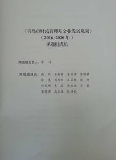 教师主持编制的《青岛市财富管理基金业发展规划(2016-2020)》及《青岛财富管理基金发展报告2017》发布