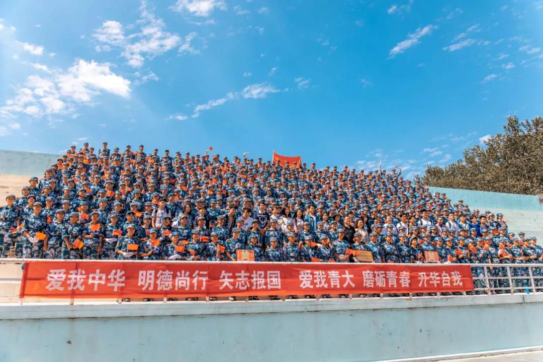 2019级全体新生于青岛大学浮山校区西院体育场参加青岛大学2019级军训成果汇报暨开学典礼。