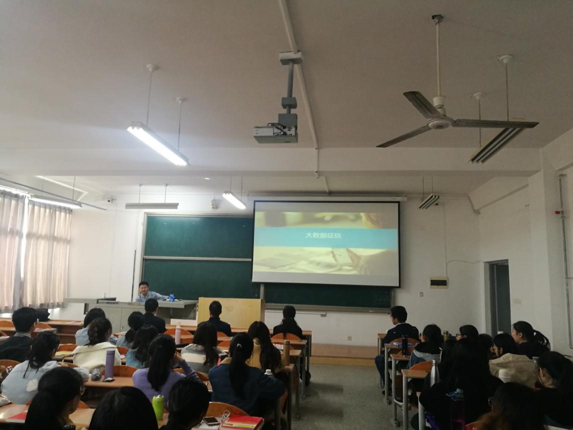 3.2019年11月8日,聘请建设银行数据管理部征信管理处高级副经理郑晓乡来校,举办“大数据征信的内涵、背景及现状”的专家课堂。主要讲授征信管理和大数据应用工作,并简单介绍建设银行征信系统、建设银行大数据智慧中心的工作情况。