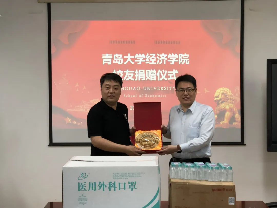 党委书记张守珩、院长刘喜华、党委副书记王海荣、2019级辅导员李冉出席了捐赠仪式。会上,张书记为鞠群校友颁发了纪念品,刘院长颁发了捐赠证书,以感谢他对母校的无私捐助。