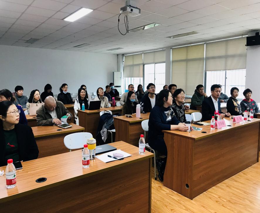 工会小组长许清清主持,青岛大学工会副主席万萍莉和学校教职工代表共同聆听讲座。