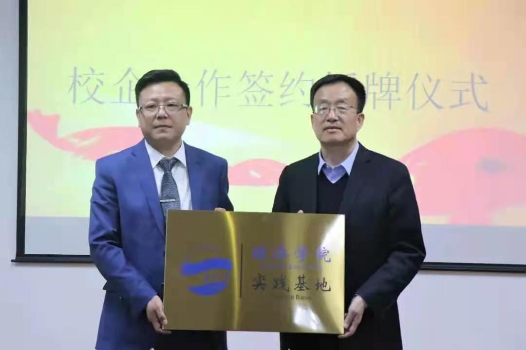 与青岛骄阳纸业有限公司实习基地共建协议书,并由刘喜华为企业授牌。