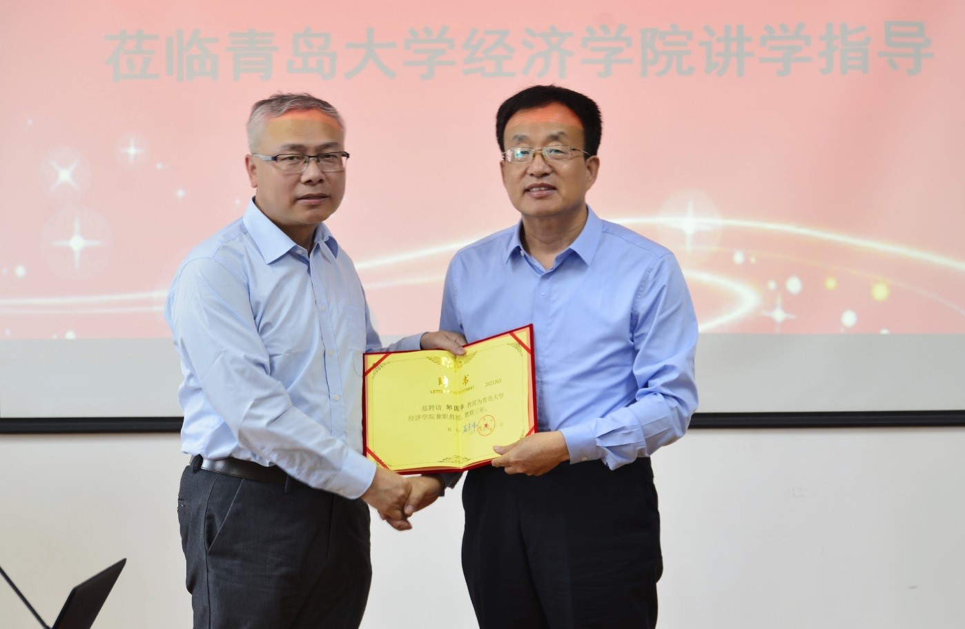 “经济学名家讲堂”,为全院师生做了《Model averaging estimation for probability density functions》的精彩学术报告,讲座由陈东景副院长主持。