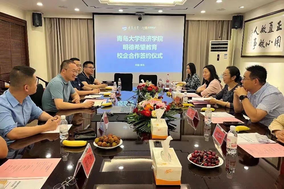 富源集团董事长崔文涛、副总裁韩磊、明德希望教育总经理杨言鑫、副总经理司诺、青岛校区主任陈之圣陪同必威