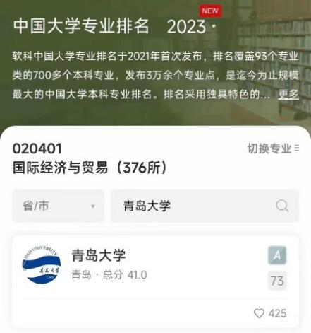 2023年6月,高等教育专业评价机构软科正式发布“2023软科中国大学专业排名”, 该排名覆盖专业数量最多、参评专业规模最大,同时呈现中国大学专业排名及评级信息。其中国际经济与贸易专业榜单共376所高校,必威BETWAY(中国)官方网站