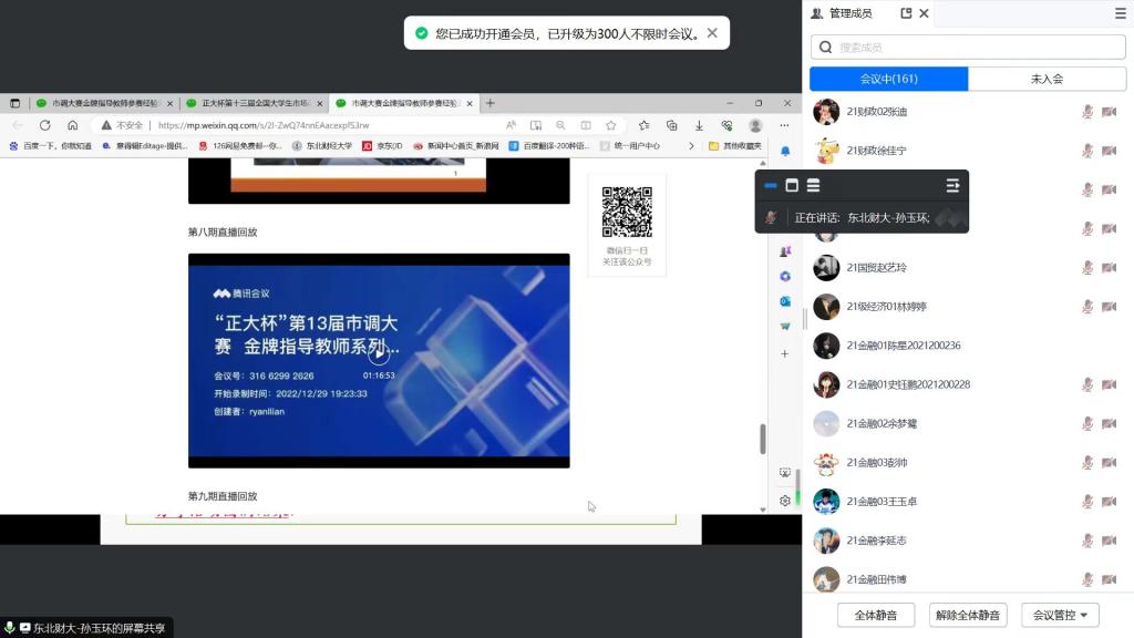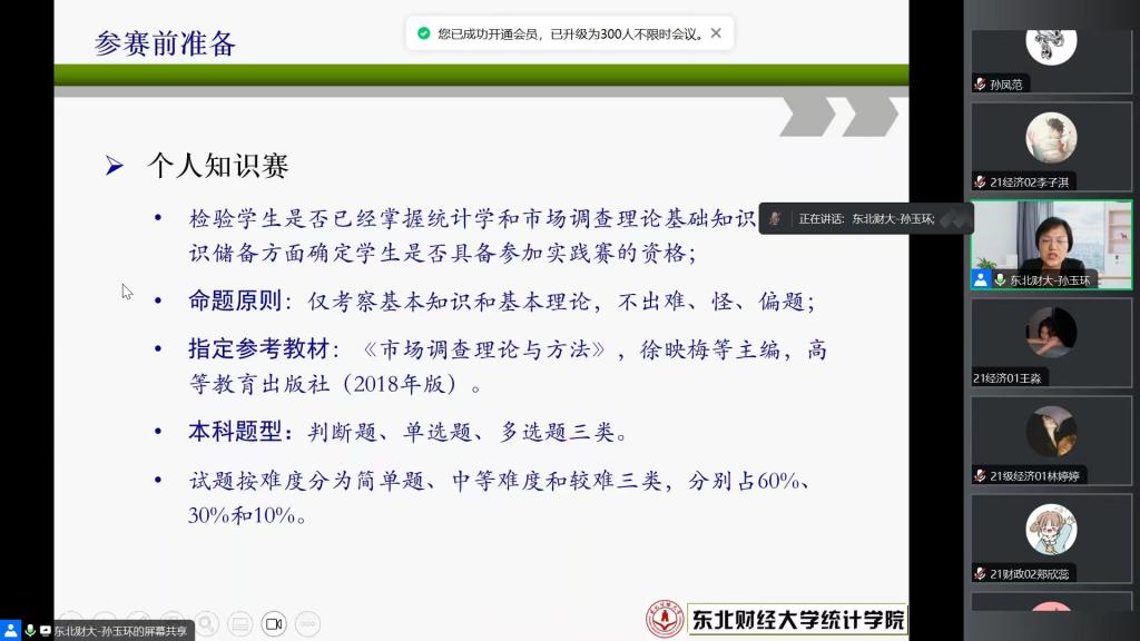 副院长孙玉环教授为全校师生160多人,在线上做了题为“‘市场调查与分析大赛’指导团队与国赛评审经验分享”的高端讲座。