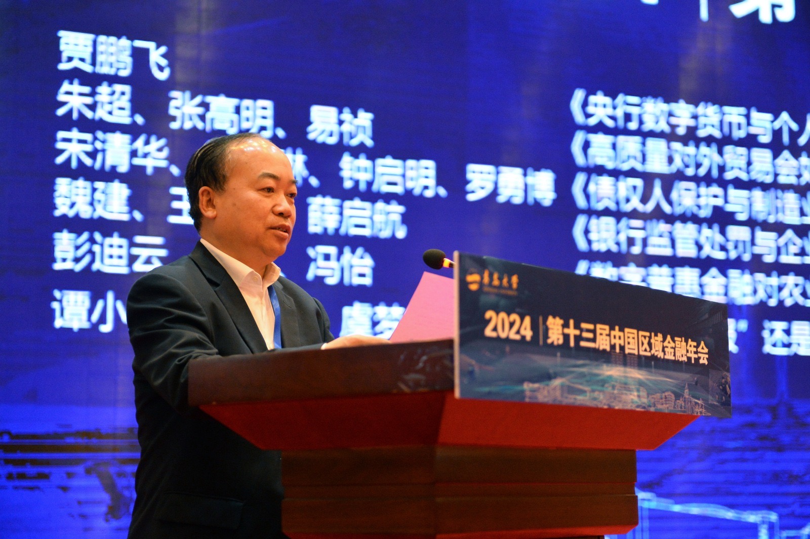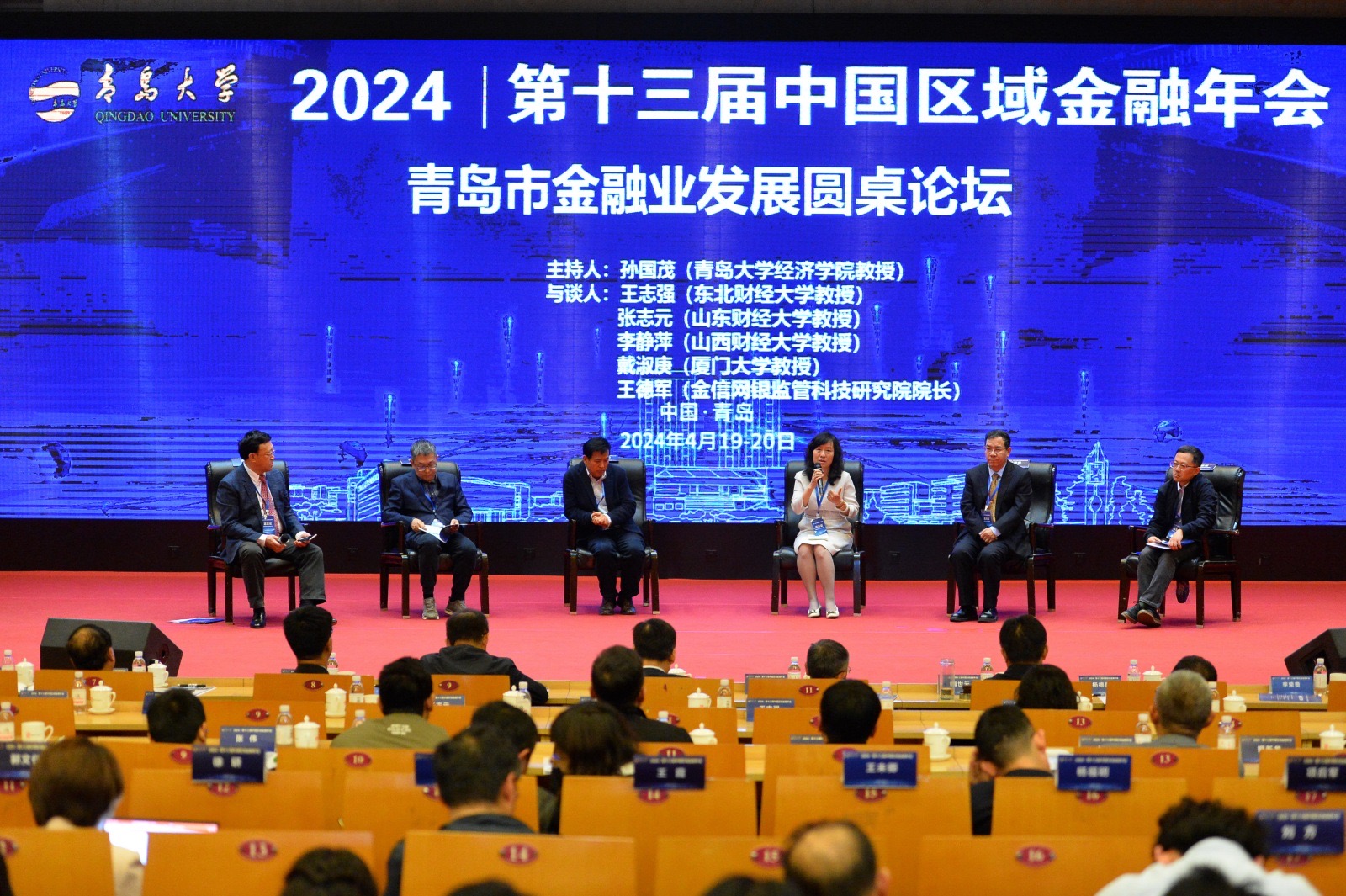 、东北财经大学青岛金融研究院、青岛市金融学会、青岛金家岭金融聚集区管理委员会承办,《东方论坛——青岛大学学报(社会科学版)》协办的第十三届中国区域金融年会在我校顺利召开。校党委书记胡金焱出席年会并做了题为《简析做好金融五篇大文章》的主旨演讲,副校长李荣贵出席年会致欢迎辞。