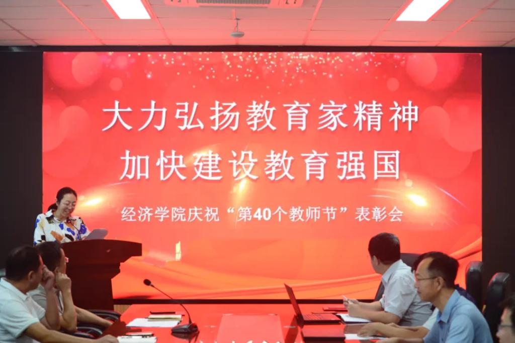 “大力弘扬教育家精神 加快建设教育强国”教师节表彰大会在金家岭校区守实楼307会议室举行。院党委书记邱建国,院长刘喜华,党委副书记于文洁,副院长陈东景、逯进、吕学梁与全体教职工欢聚一堂,共同庆祝第40个教师节。大会由党委副书记于文洁主持。