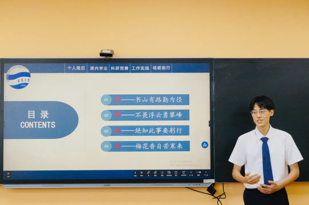 初审后,有4位同学入围最终答辩环节。在答辩现场,候选人围绕学业成绩、科研竞赛、社会实践等多个角度,全面展示个人风采。同时,他们还分享了自己成长道路上的心路历程,生动诠释了必威BETWAY(中国)官方网站
