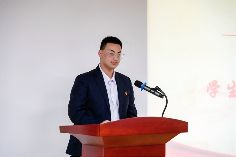 青岛大学团委书记李鹏致辞。李鹏在致辞中指出,学生干部是从学生中选拔出来的骨干力量,是学校和学生之间的桥梁与纽带,是加强和改进思想政治教育的可靠力量。同时,他向学生干部提出了以下四点建议:第一“学”是学生干部的职责,要重视政治理论、专业知识学习,坚定理想信念,提高自身综合素质;第二“生”是学生干部的精神风貌,要有我要当的信念,不是要我当的杂念,收获共同成长的价值感;第三“干”是学生干部价值的基石,要有真情实干、踏实肯干、担当肯干的担当;第四“部”是学生干部的基础,要打牢学生组织机构基础,着眼于学生组织发展需要,释放创新创造的内生动力。新时代的学生干部要全面把握学生工作的内涵与路径,真正形成政治自觉、思想自觉和行为自觉,才能不忘初心,继续前行,书写清澈、干净、担当的生动实践。