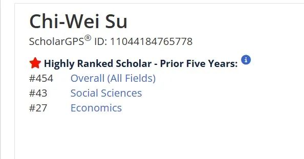 此外,国际学术机构ScholarGPS近日发布了2024年全球前0.05%顶尖科学家榜单。苏志伟教授入选全球前0.05%顶尖科学家榜单,经济学科全球排名第27位。