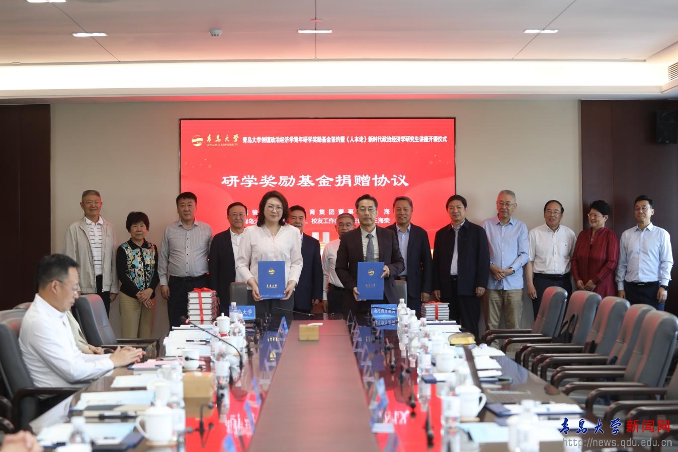 本次创镜政治经济学青年研学奖励基金签约仪式暨《人本论》新时代政治经济学研究生讲座开课仪式,在热烈的学术氛围中圆满落幕。仪式为青年学者和学生成长与学术创新搭建了重要平台,更为政治经济学学科发展奠定了坚实基础。相信未来在多方协同努力下,依托基金赋能与课程体系化建设,我校政治经济学学科生态将进一步完善,为国家经济治理体系现代化贡献青大智慧。