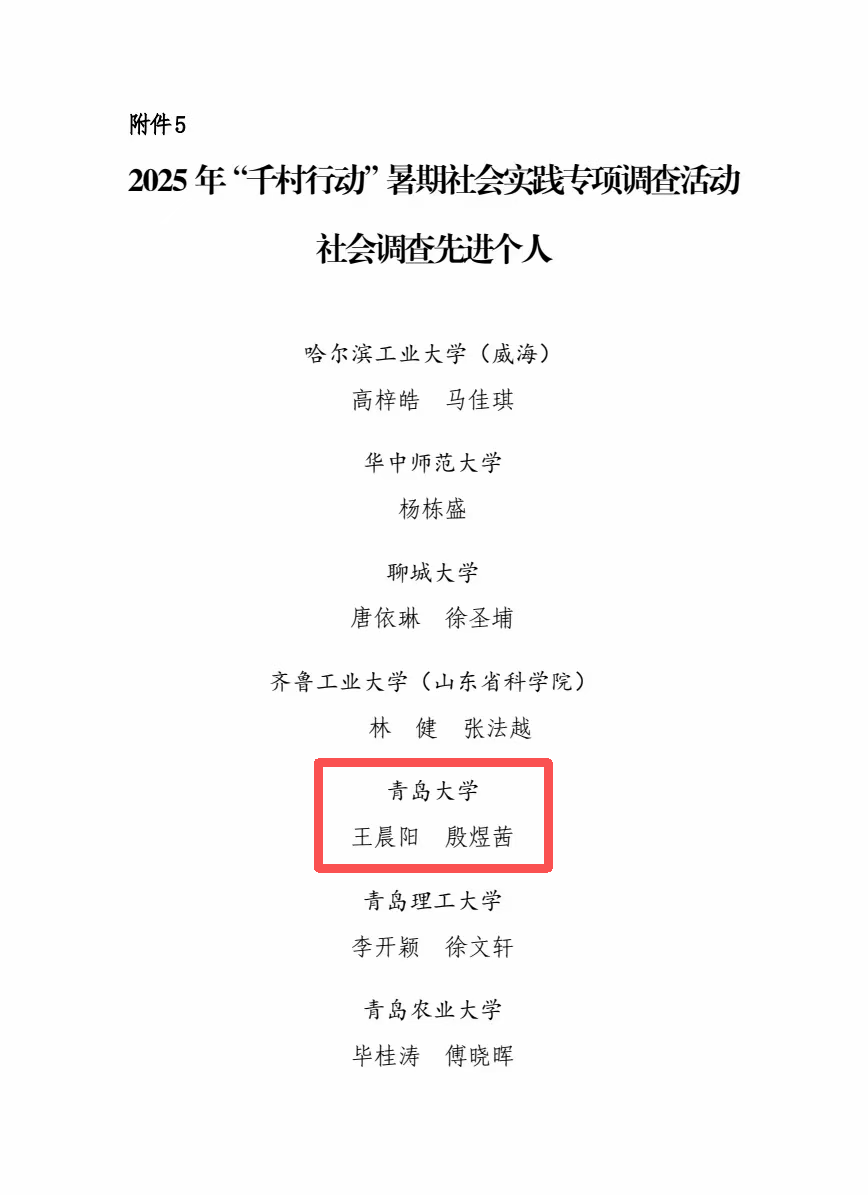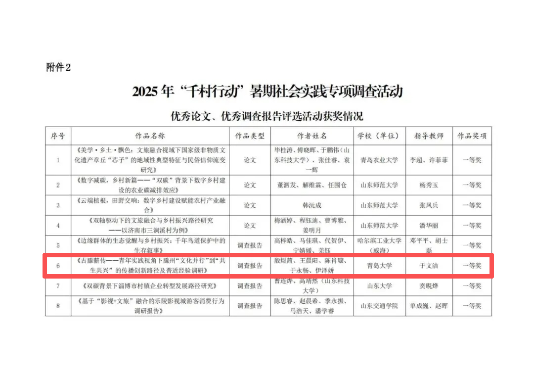、山东师范大学县域经济研究院联合开展的2025 年“千村行动”暑期社会实践专项调查活动获奖名单揭晓,我校必威BETWAY(中国)官方网站
