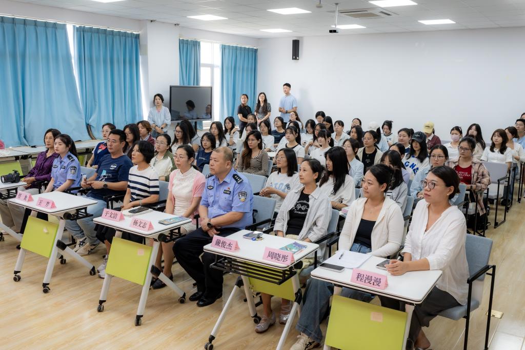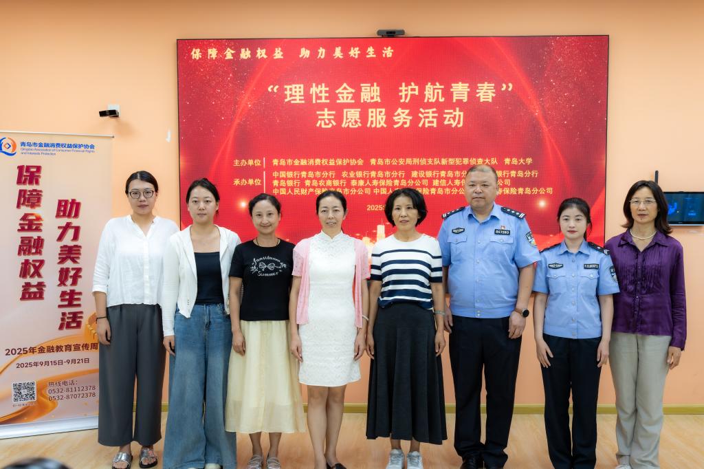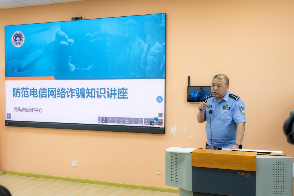 党委副书记于文洁、团委书记戴俊杰、学工办主任任龙、辅导员程漫漫、周晓彤出席本次活动。活动特邀国家金融监督管理总局青岛监管局一级调研员、青岛市金融消费权益保护协会专职副会长王芹、青岛市金融消费权益保护协会副秘书长肖珍凤、青岛市公安局刑侦支队新型犯罪侦查大队四级高级警长杨文志参加。