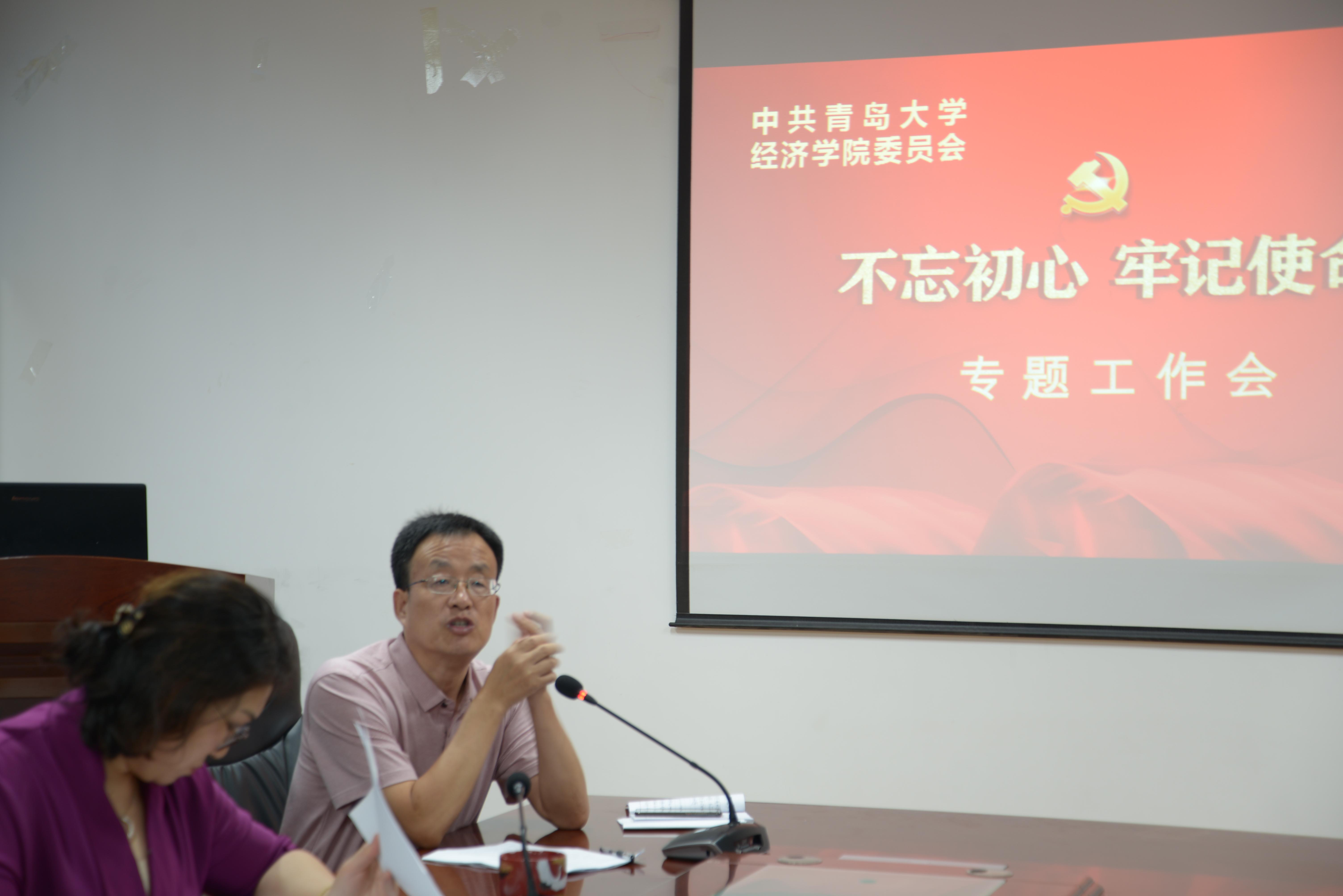党委副书记王海荣领学了习近平在“不忘初心、牢记使命”主题教育工作会议上的重要讲话和《中共青岛大学委员会“不忘初心、牢记使命”主题教育实施方案》。