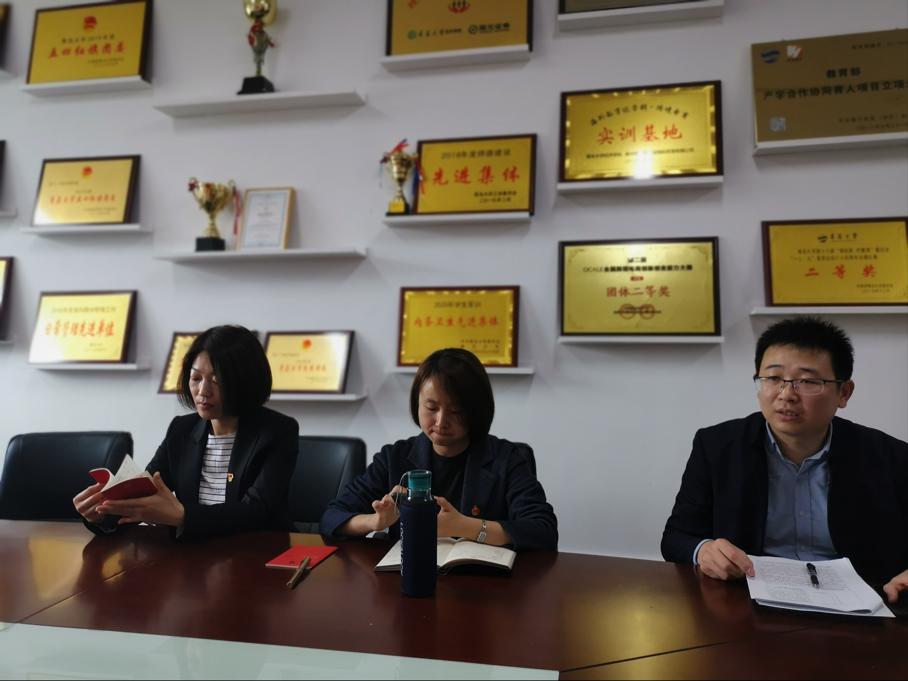 国贸系教师党支部联合学生第三党支部开展“党旗飘扬映初心”主题党日活动——共话课程思政建设,国贸系的教师党员和学生党员代表参加此次活动。