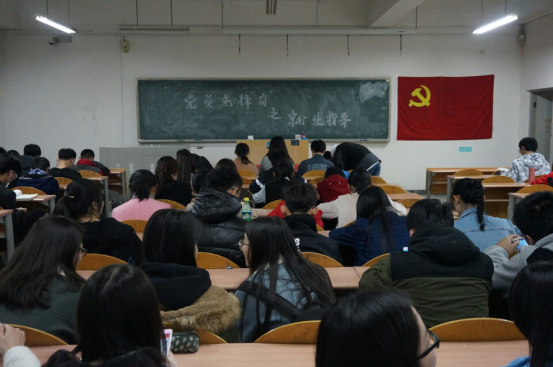 党员先锋岗之就业指导会在青岛大学金家岭校区西院一教302召开。2013级预备党员经济创新学班李佳润和徐康馨、经济学班李元鑫、经济统计学班刘春苗和张国栋以及2016级财政学班、经济学班全体学生参加了本次会议。