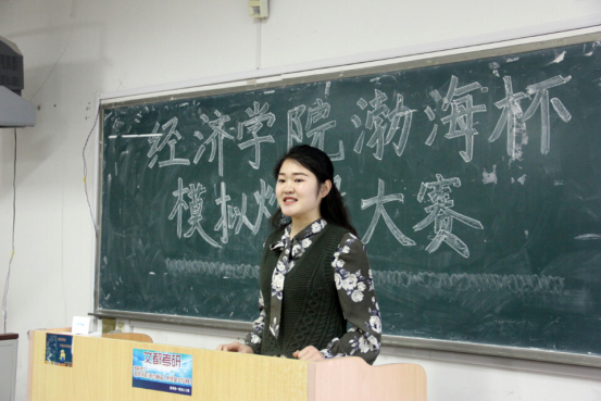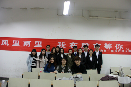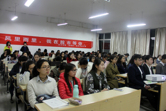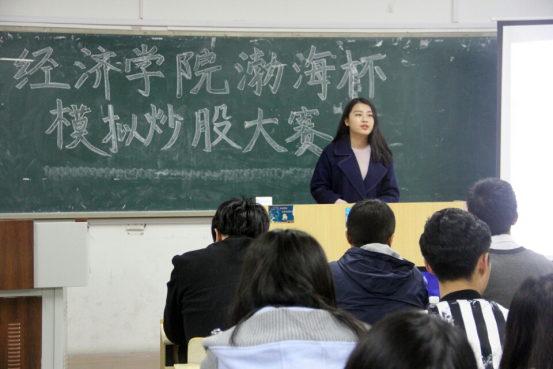 “渤海杯”模拟炒股大赛开幕式在金家岭校区二号实验楼举行。渤海证券业务经理郭孟琦、成泽雨、董廷哲,青岛著名私募机构研究员丁维能出席此次开幕式。
