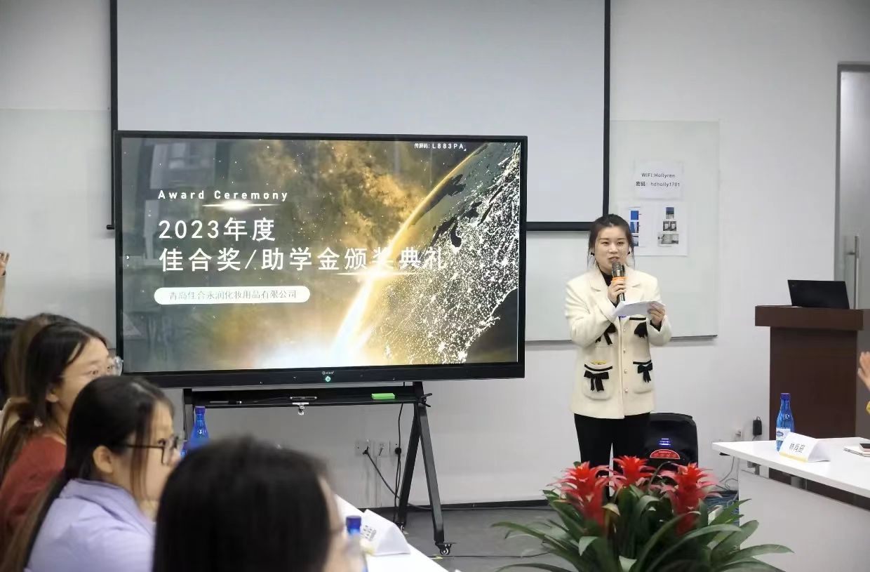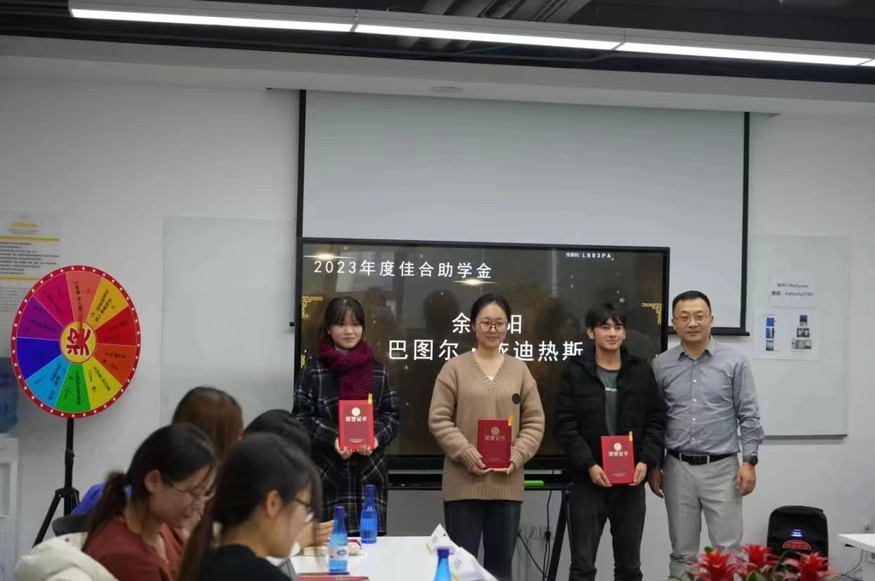 师生一行参观了企业各部门、荣誉文化长廊、茶歇间等,通过近距离接触企业环境,同学们深入了解了企业特色,感受到了浓厚的文化氛围和舒适的工作环境。2023年度青岛大学佳合永润奖助学金颁发仪式上,共有25名同学领取了奖助学金以及荣誉证书。