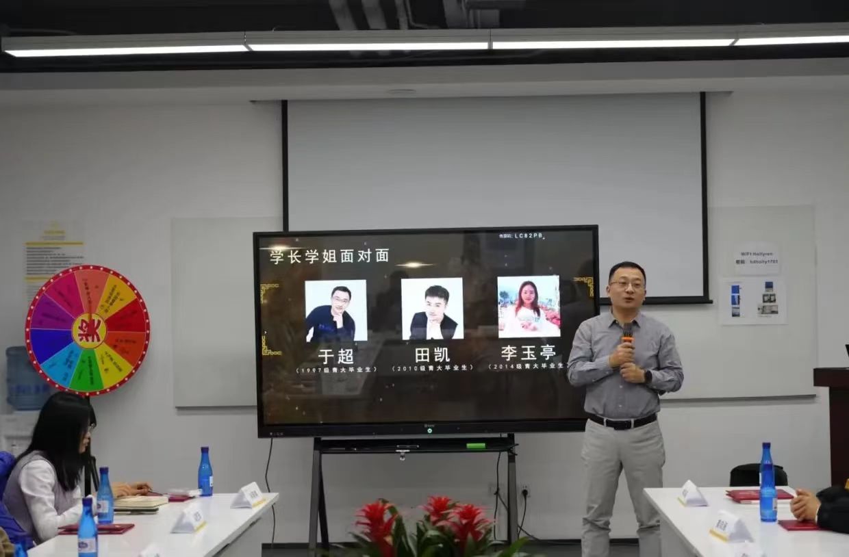 于超对获得奖励和资助的同学表示了热烈的祝贺,对于本次校企活动表达了高度的肯定。作为青岛大学的校友,他结合自身创业经历,成长经历,对同学们提出了几点建议。最后于超对于母校致以崇高的敬意,并期待未来继续加强校企间的交流合作。