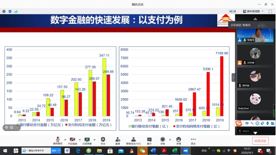 师生近200人,在线上做了题为“数字普惠金融与银行业布局”的高端讲座。